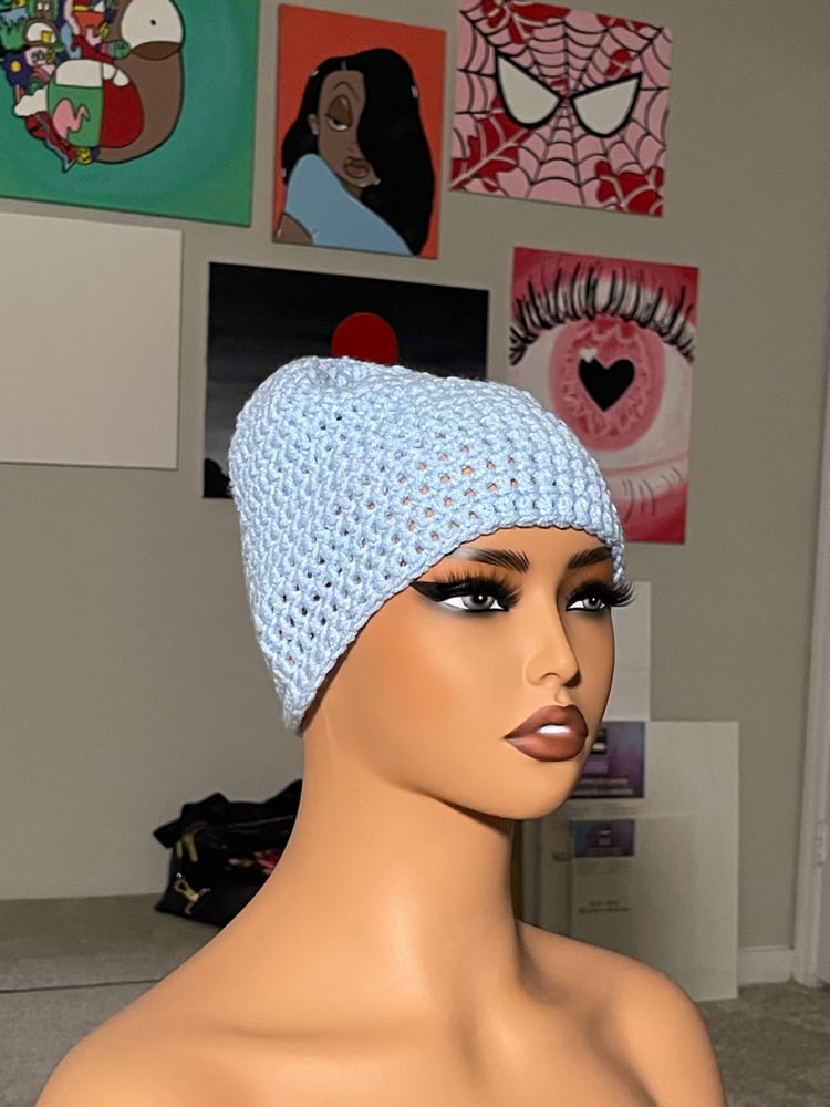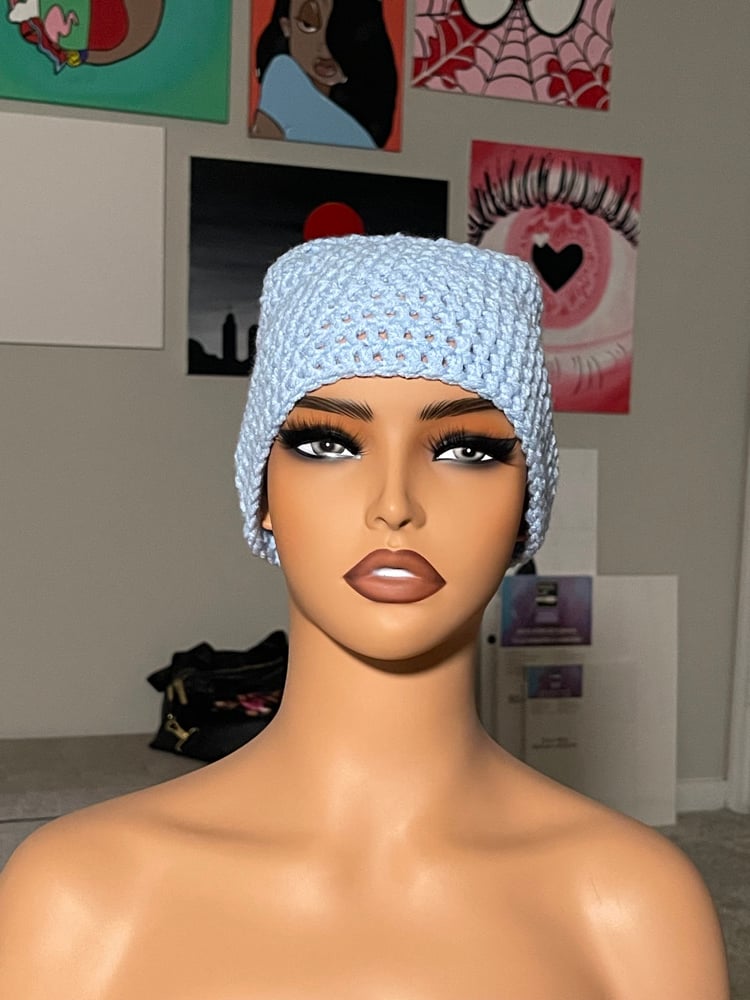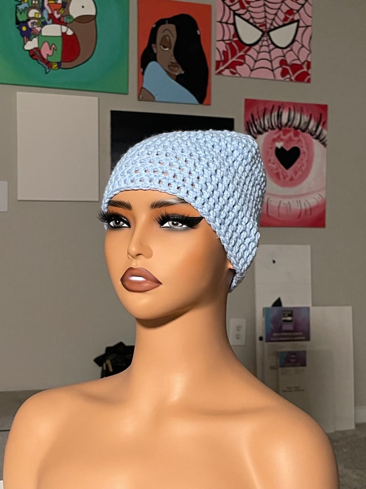 Handmade with care, this light blue fitted crochet beanie is soft, cozy, and designed to fit just right without slipping or stretching out. The soothing pastel tone adds a fresh, airy feel while keeping you warm and comfortable.