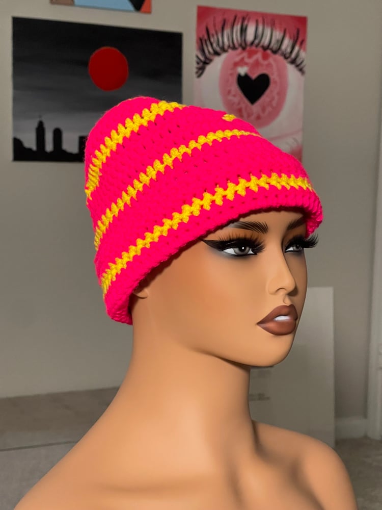 Bold yet sweet and effortlessly cool, this pink and yellow beanie is your go-to when your outfit needs a happy pop of color 🌸💛